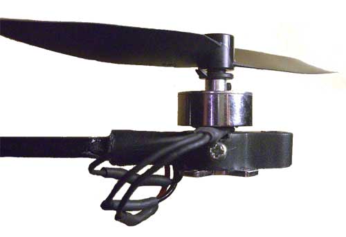 I modified the Blade's plastic tail motor case to accept the motor. This meant enlarging the center hole and making two small holes in the sides to pass screws to the motor's base. I also made a channel on the rotor side to accommodate the wires from the motor.